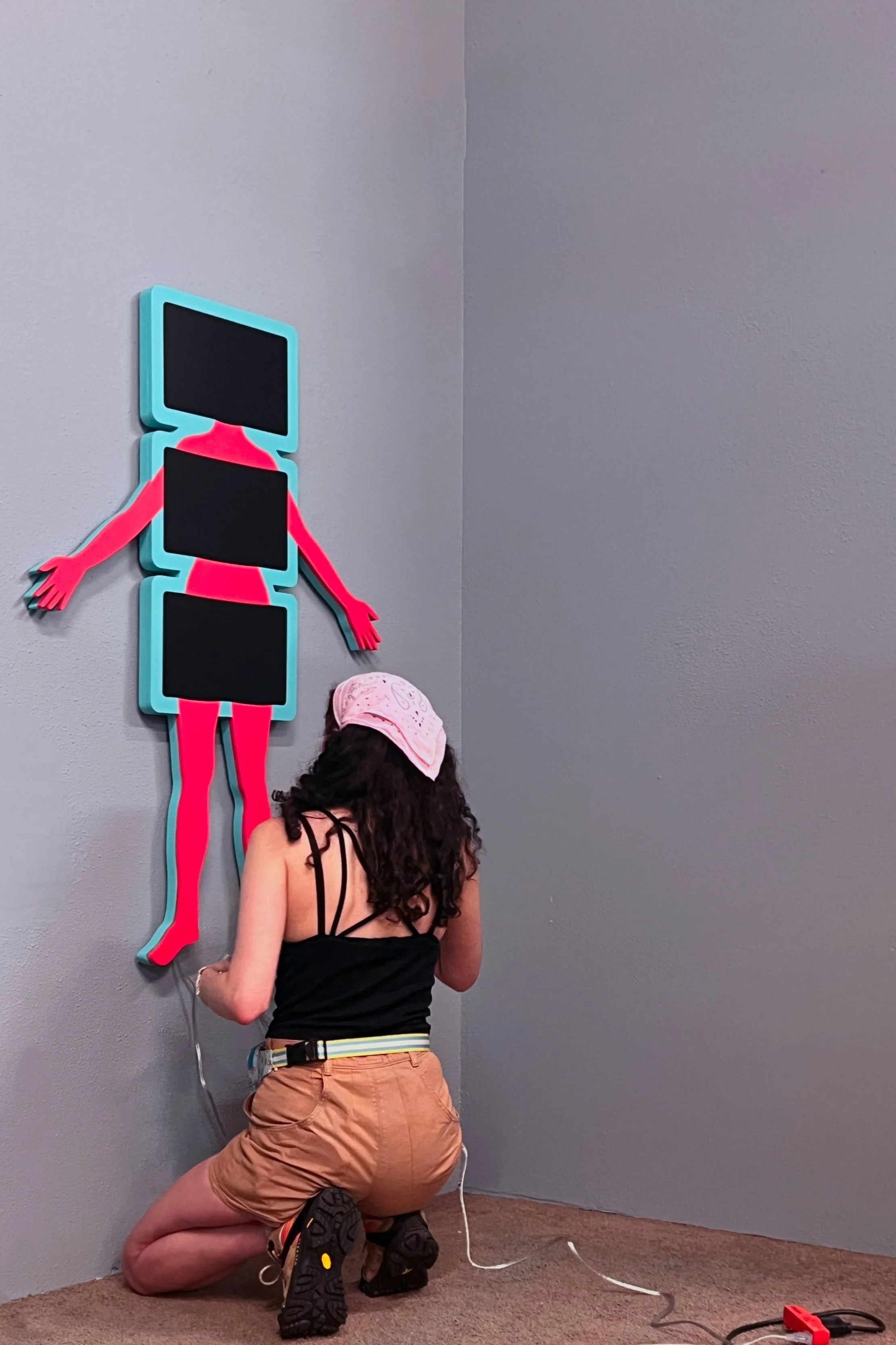 Plywood, acrylic paint, portable monitors, Raspberry Pi’s, hand-drawn animations made in Adobe Animate and Procreate.